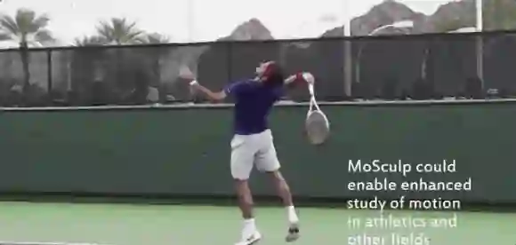 张修明说:“想象一下,你有一段费德勒在网球比赛中发球的视频,还有一段你自己练习打网球的视频。你可以用MoSculp创建两种场景的运动雕塑,然后进行对比,更全面地研究你需要改进的地方。”