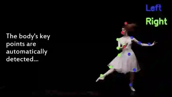 将视频加载到系统后,MoSculp将检测到的关键点覆盖在输入帧上,并通过几个随机选择的帧来验证。(内置的校正工具可以让用户在必要时进行调整。)在对“暂时不一致的检测”进行校正后,它会生成运动雕塑,并将其加载到自定义界面中。