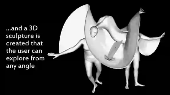 将雕塑和3D这两种艺术混合起来的这些作品,是由MIT计算机科学与人工智能实验室、Google Research以及加州大学伯克利分校的研究人员共同创造的。他们利用AI系统产生了这些超现实主义的运动与姿势的混合。