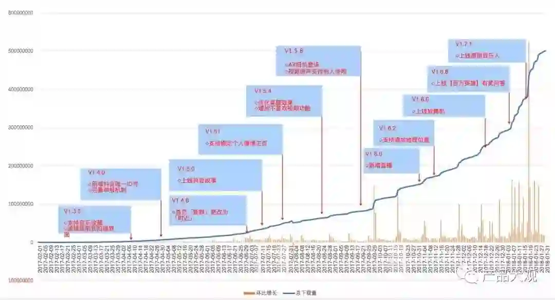 通过对抖音短视频截止到2018年2月分析,在产品和运营方面均受益良多,在此向抖音团队致敬,也向Musical.ly团队致敬。在产品方面,抖音团队在确认了产品主体框架后,保留了很大的容错空间,截止到目前均未对产品架构做任何大的重构调整。从抖音第一版发布至今约500个日夜,基本保持平均10天发布一个版本的节奏,虽然说敏捷开发及小步快跑的方法论在互联网圈被讲烂了,但是真正能运作起来的团队非常少,可见整个团队功力非常优秀。