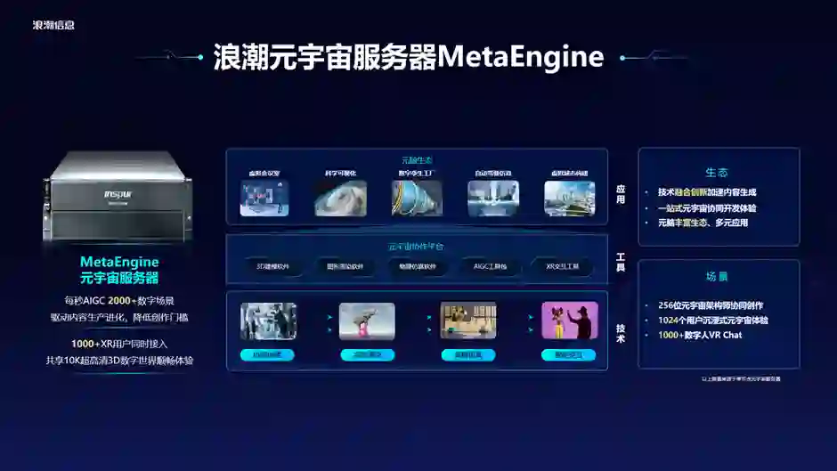刘军表示,浪潮推出的元宇宙服务器MetaEngine,就是要打造支撑元宇宙的软硬一体化算力基础设施。