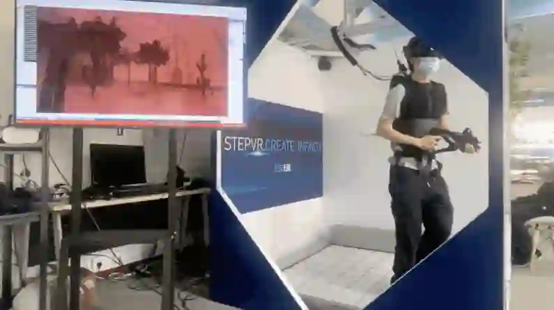 经过九年的努力,STEPVR现在已经能在大面积空间中实时追踪用户的所有动作,而且即便是在高速移动的过程中,也能把用户视角看到的所有画面全部实时渲染出来。