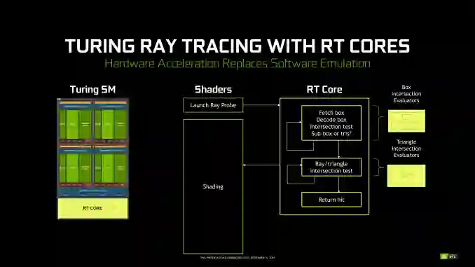 第一,专业图形可视化技术发展到了一个新台阶。2018年,英伟达首次将RTX技术和RT Core硬件集成到RTX系列GPU中,让「光追」技术真正首次实现了落地。