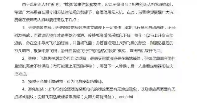 在沙地和草地上降落是有风险的,尤其是草地上降落,桨叶会扫到草,然后桨叶会有伤痕,沙地的话如果不平,啥子会随着桨叶打进机器里面,不要问我怎么知道的,亲身经验,甚是后悔呀。 然后就是自动返航了,虽然降落稳,但降落的误差还是存在的,降落点与实际起飞点有一米左右的误差,这个时候飞机拉低了之后还是手动降落吧。这个可能和GPS定位有误差有关,难以避免。