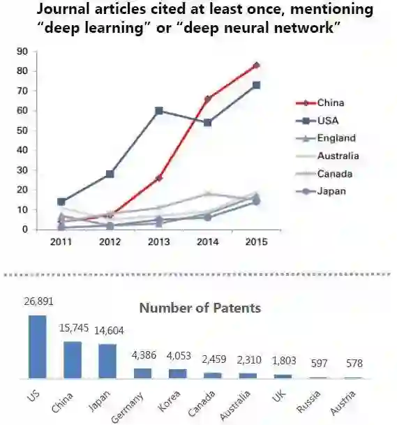 深度学习或深度神经网络期刊文章被引用至少一次&专利数量