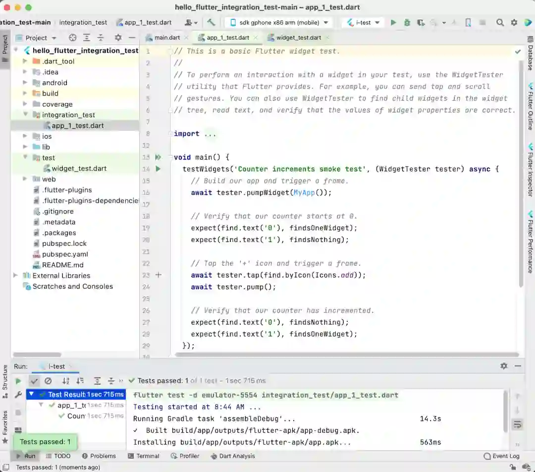 △ 在 IntelliJ/Android Studio 插件中集成测试您的 Flutter 应用