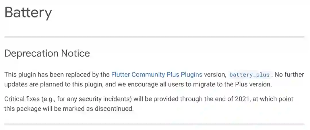 另外,由于 Flutter 团队不再对这些插件进行积极维护,因此它们不再标记为 Flutter Favorite 插件。我们建议您改用以下插件的 plus 版本 (如果您还未这样做的话) :