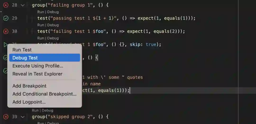 Visual Studio Code: 依赖项、"Fix All" 命令和测试运行程序