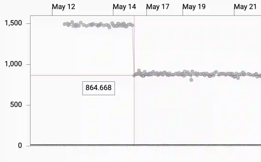 △ 在添加修复程序以积极地回收未使用的大型图片的内存前后的 GC 数量对比
