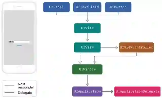 UIResponder是iOS中用于处理用户事件的API,可以处理触摸事件、按压事件(3D touch)、远程控制事件、硬件运动事件。可以通过touchesBegan、pressesBegan、motionBegan、remoteControlReceivedWithEvent等方法,获取到对应的回调消息。UIResponder不只用来接收事件,还可以处理和传递对应的事件,如果当前响应者不能处理,则转发给其他合适的响应者处理。
