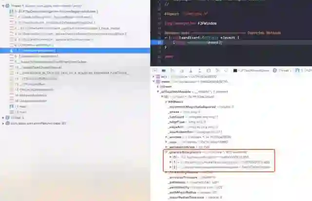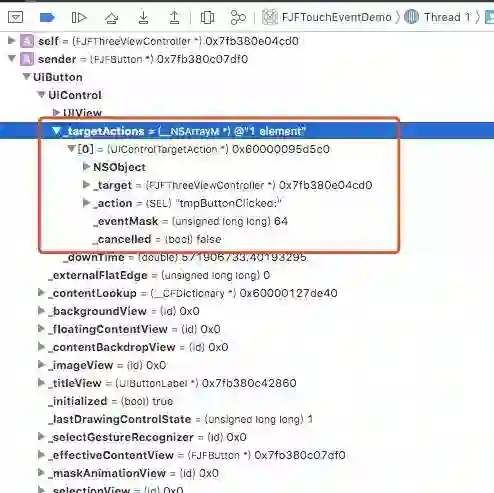 实际上,我们在程序某个合适的位置打个断点来观察UIControl的内部结构,可以看到这样的结果: