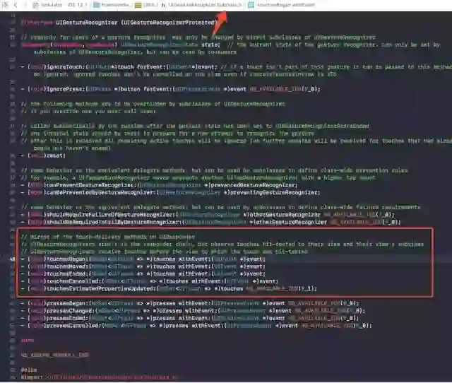 从日志可以看出,手势识别器识别手势期间,事件不会传递给FJFTapView,因此FJFTapView的touchesBegan:withEvent:不会被调用;而手势识别器成功识别手势后,独吞了事件,不会再传递给FJFTapView,因此只打印手势识别器识别成功后手势的绑定函数。