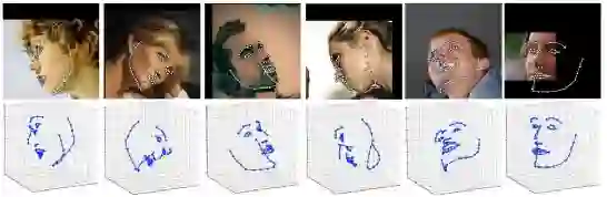 DFL 和 FaceSwap 都使用了面部定位网络(FAN),FAN 可以为提取出来的人脸创建 2D 和 3D 特征点(如上图所示)。3D 特征点可以广泛感知人脸的方向,包括侧面的轮廓和比较尖锐的角度。