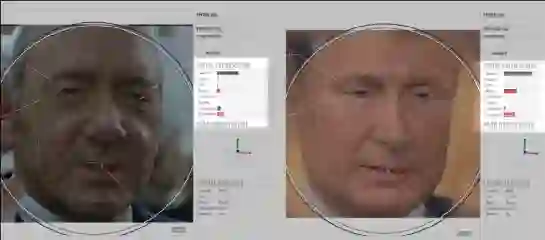 根据这个比 DFL 和 Faceswap 更详细的面部特征分析,我们发现 Spacey 的换脸结果中很少有 Putin 那样的愤怒、厌恶和轻蔑的表情。