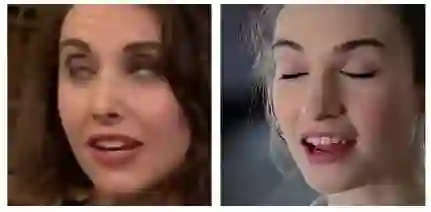 不过上图中依然存在明显的差异:角度、镜头和灯光没有完全匹配;人物 A(左图)没有像人物 B(右图)一样完全闭上眼睛;人物A的图像质量和压缩率更差;人物 B 看起来比 A 更快乐。