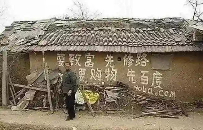 农村刷墙广告最早是“为人民服务”的政治刷墙,后来是“百年大计,教育为本”的教育刷墙,再后来发展成“正大猪三宝,养猪效益好”“某某村某某家卖蜂窝煤球”的农资刷墙,接着是“海尔空调买得对,老婆才能搂着睡”的家电下乡刷墙。