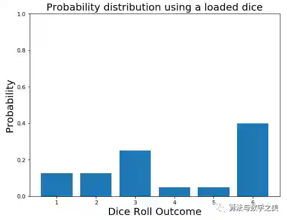 无论如何,你玩得越多,你就越可以看到到骰子总是落在相同的面上。此时,您开始考虑骰子可能是不公平的,因此您改变了关于概率分布的最初信念(图8)。