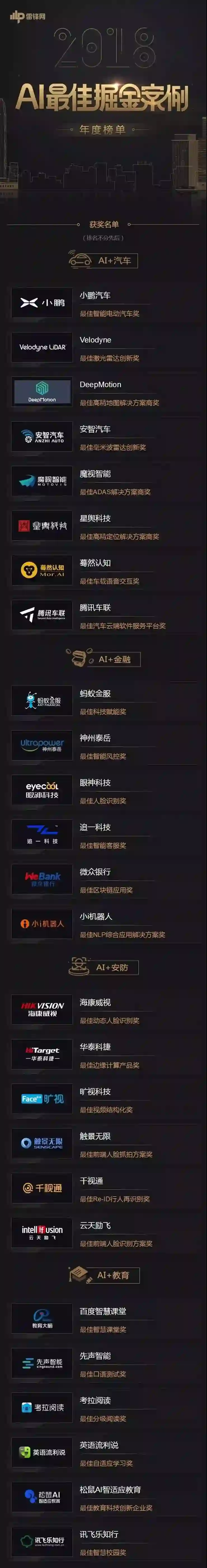 2018年尾页,新智驾正式开启第二届「AI 最佳掘金案例年度评选」。从商业维度出发,寻找人工智能在自动驾驶、汽车、金融、医疗、教育、安防、零售等10个行业的最佳前沿应用。