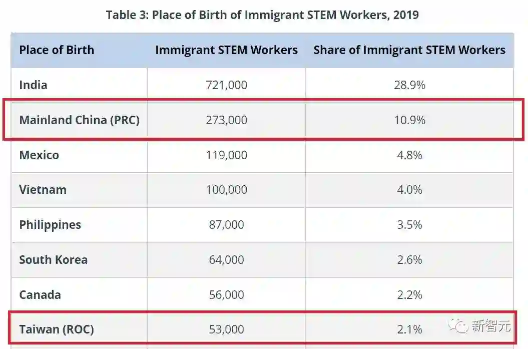 另外,中国在海外的研究人员数量巨大。根据美国移民委员会(American Immigration Council)的数据,美国高校STEM专业学生16%来自中国;在美从事STEM领域工作的中国大陆及台湾省人超30万,占全部STEM技术移民的13%。