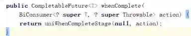 如果异步的编程模型基于 JDK8 的 CompletableFuture,可以通过 whenComplete 对返回值的异常进行非空判断,当异常非空时,进行异常逻辑处理,相关接口如下: