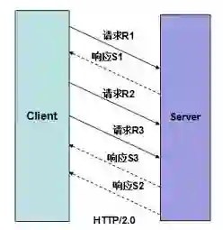 客户端发送 N 个请求,服务端返回 N 个或者 M 个响应,利用该特性,可以充分利用 HTTP/2.0 的多路复用功能,在某个时刻,HTTP/2.0 链路上可以既有请求也有响应,实现了全双工通信(对比单行道和双向车道),示例如下: