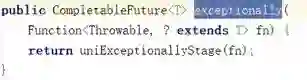也可以通过 exceptionally 方法来处理异步执行发生的异常,相关接口如下所示: