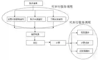 对于一些逻辑上不存在互相依赖关系的服务,可以通过异步 RPC 调用,实现服务的并行调用,通过并行调用来降低服务调用总耗时,以手游购买道具流程为例,消费次数限制鉴权、账户余额鉴权和下载记录鉴权三个服务可以通过异步的方式并行调用,来降低游戏道具购买的耗时: