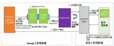 Tomcat + Servlet3 的异步化处理原理如下所示: