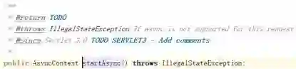 通过 request 获取异步上下文 AsyncContext, AsyncContext context = request.startAsync(), 相关接口定义如下:
