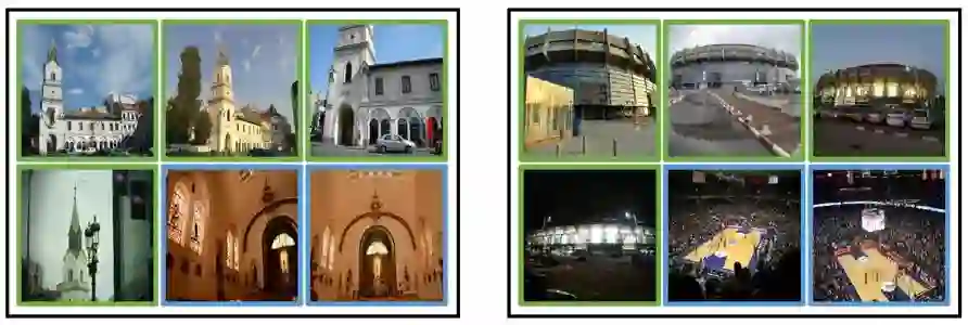 同类干扰,同类目下的多场景,例如下图中的教堂/体育馆的室内室外场景;