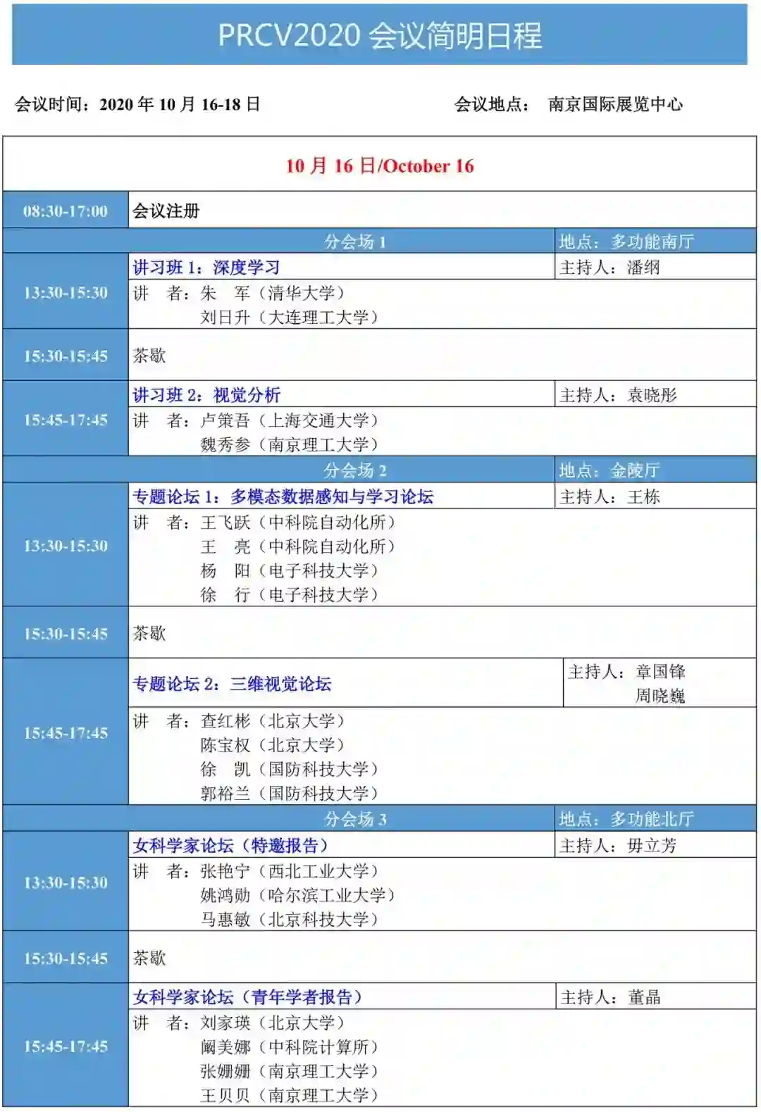 第三届中国模式识别与计算机视觉大会(PRCV 2020) 将于2020年10月16-18日(本周五至周日)在六朝古都南京举行。本次会议将举办模式识别、计算机视觉与机器学习领域前沿理论与方法专题论坛、讲习班、博士生论坛、青年女科学家论坛,以及行业专业应用竞赛等。