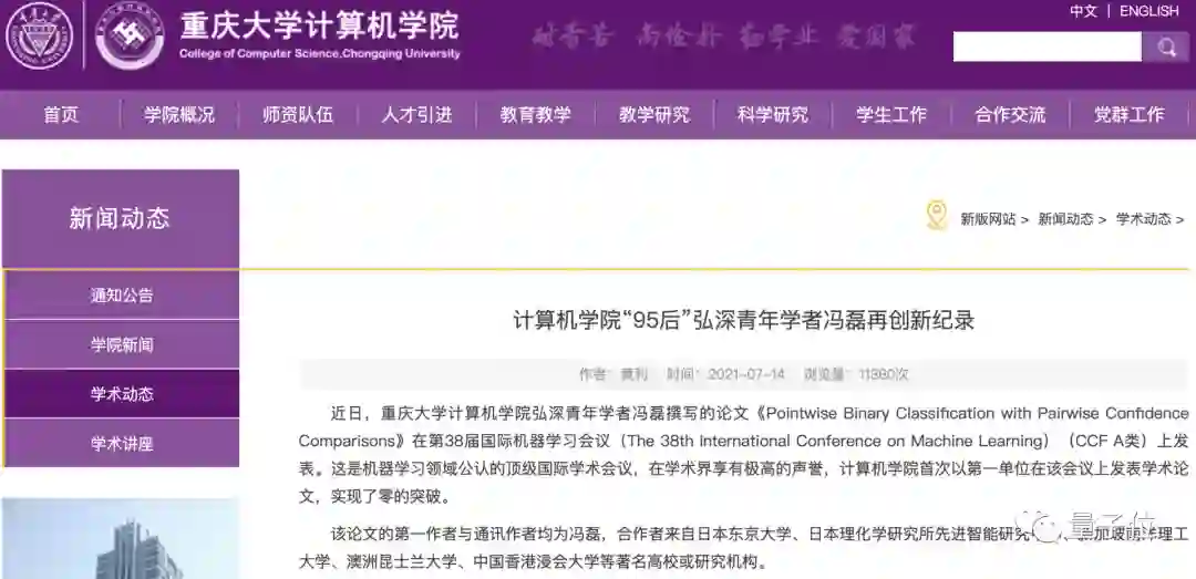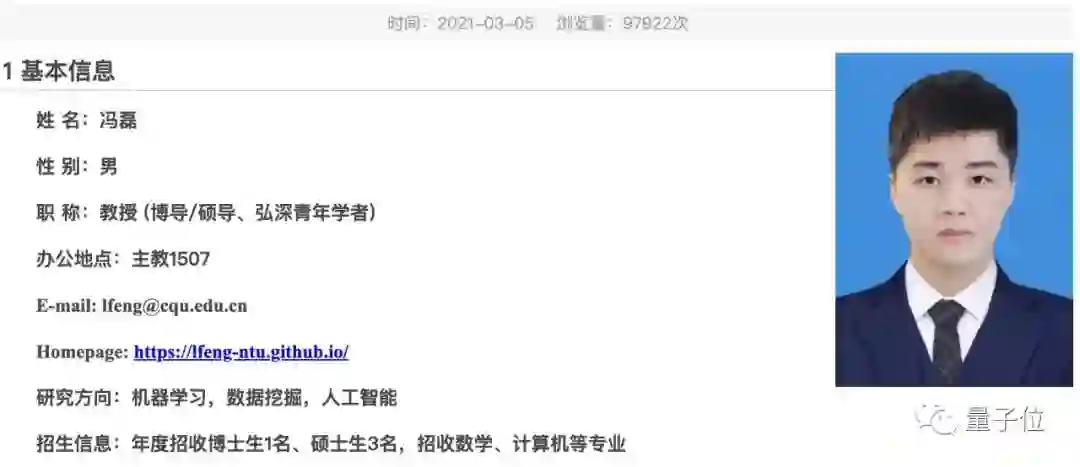 照片上这位青年才俊,今年1月从南洋理工大学博士毕业之后,就被重庆大学计算机学院作为引进人才聘为教授。