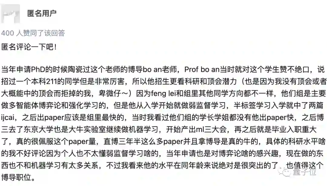 他的本科虽然只是211(西南大学),但据知乎上一位匿名网友透露,冯磊的博士导师对他赞不绝口,“招过一个本科211的同学但是非常厉害”, 他的学长学姐也都没有他的paper产出快(这也让这位导师表示自己招生更看科研和顶会潜力)。