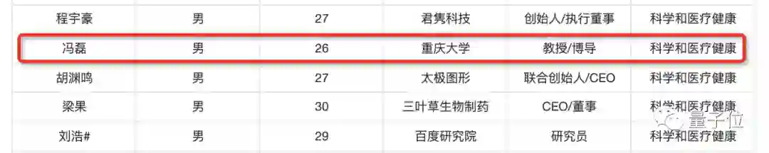 再回到冯磊本人,一个月前,他还上榜了2021福布斯中国30 Under 30榜单,该榜单每年选出10个行业中300位优秀的年轻人,榜上人员的平均年龄为27.7岁。