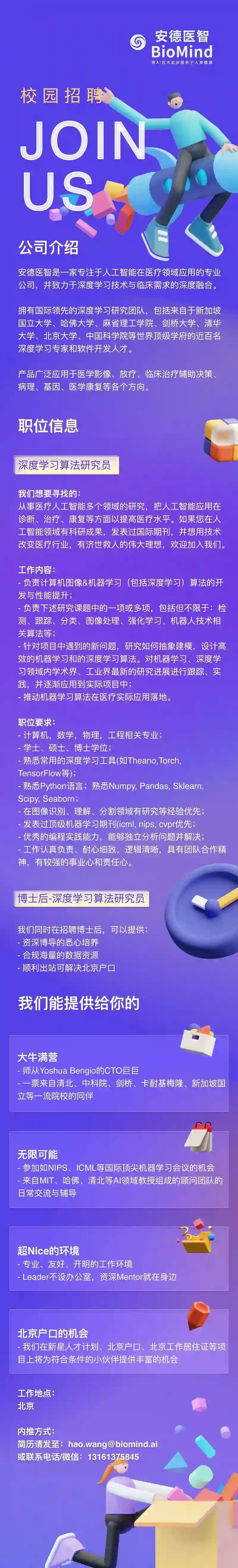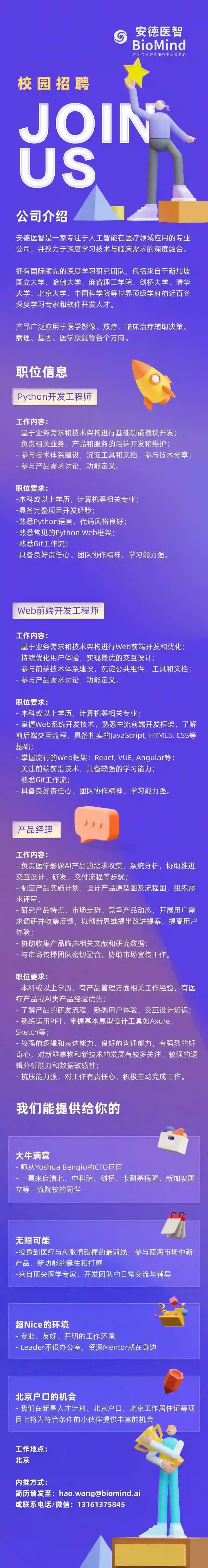 薪资诱人!医疗AI独角兽-安德医智(BioMind)2022春招来了!