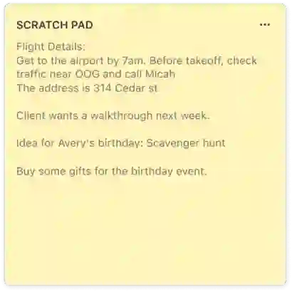 在便笺组件中,你可以展示最新纪录的便笺,当然也可以立即在上面进行记录。