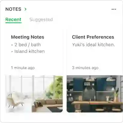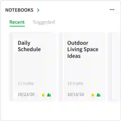 笔记组件有两个标签页可供切换,一个是最近的笔记,一个是建议的笔记。
