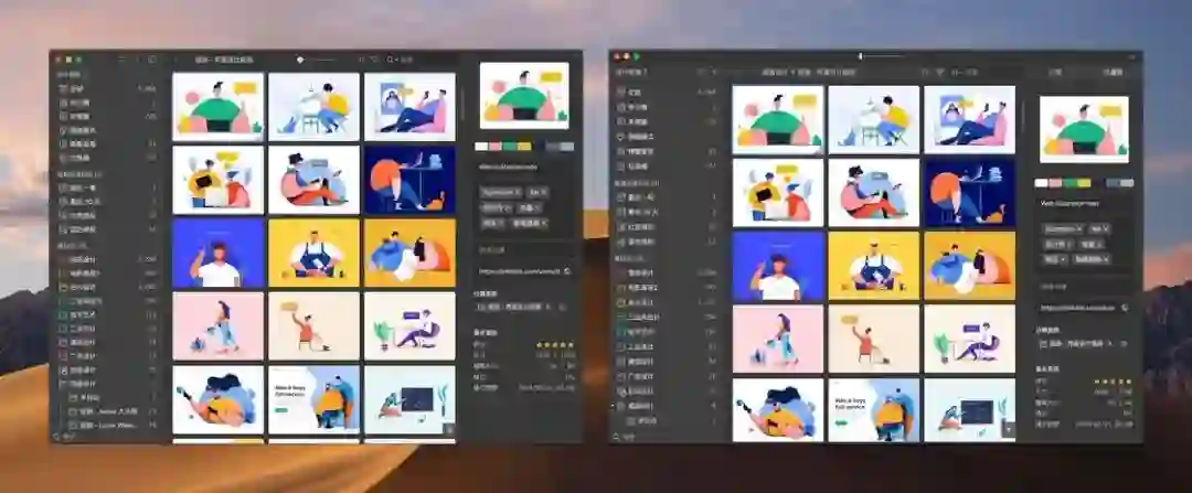 Eagle 2.0 对界面进行了部分重新设计和细节调整,整体观感更加现代,新的应用图标也符合了 macOS Big Sur 的设计规范。