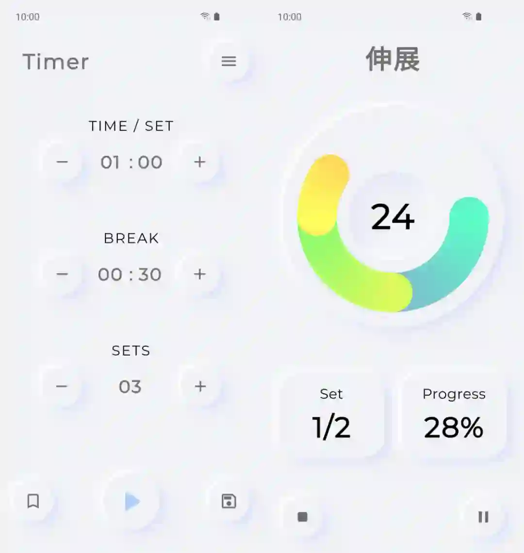 ▍Workout Timer:新拟态风格的健身计时伴侣