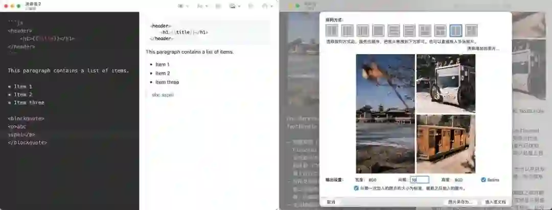 应用支持随时切换预览/编辑器模式,也可以开启双窗口边编辑边预览,不过目前并未支持「所见即所得」的编辑模式。