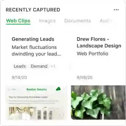 最近剪藏的内容,也可以通过标签页切换来查看剪藏的图片、文档、声音等等。