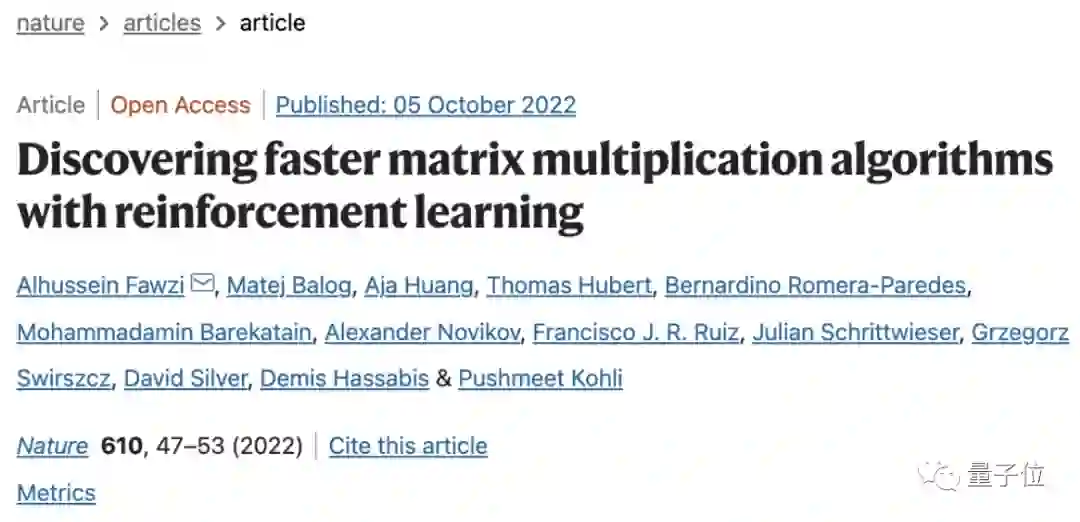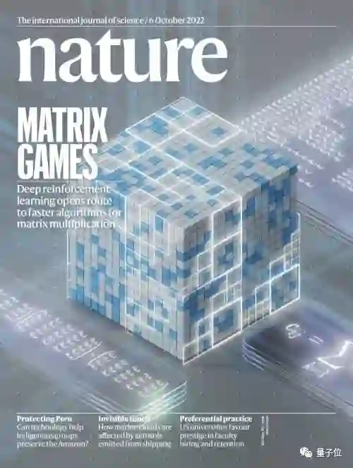 这是DeepMind最新研究成果AlphaTensor,一经发出就登上了Nature封面。