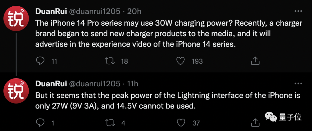 昨天,就有推特网友透露消息称iPhone 14 Pro可能会配备30W的充电器,但随后其又发文: