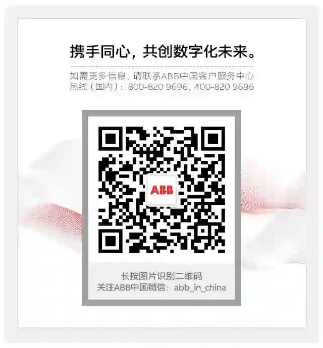 ABB(ABBN: SIX Swiss Ex)是全球电网、电气产品、工业自动化和机器人及运动控制领域的技术领导企业,致力于帮助电力、工业、交通和基础设施等行业客户提高业绩。基于超过130年的创新历史,ABB技术全面覆盖电力和工业自动化价值链,应用于从发电端到用电端、从自然资源开采到产成品完工的各种场景,谱写行业数字化的未来。作为ABB国际汽联电动方程式锦标赛的冠名合作伙伴,ABB也积极投身未来可持续发展,拓展电动交通技术疆界。ABB集团业务遍布全球100多个国家和地区,雇员达14.7万。ABB在中国拥有研发、制造、销售和工程服务等全方位的业务活动,40家本地企业,1.8万名员工遍布于142个城市,线上和线下渠道覆盖全国300多个城市。