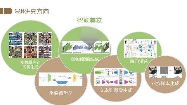 总而言之,GAN由最开始的随机噪声生成图片,逐渐在众多领域得到发展。有研究者使用GAN研究半监督学习问题,也有研究者进行图像到图像的生成探索,如给定轮廓图生成正常的图片,另外还有文本到图像的生成以及域自适应任务。域自适应任务旨在提升模型对跨域数据的泛化能力,如在一个数据集上训练好图像分析的模型,通过域适应的方法,在其他不同的数据集上仍然能够表现出较强的能力。此外还有人用GAN来做对抗样本的攻防,旨在解决生成模型的正确性和安全性的问题。