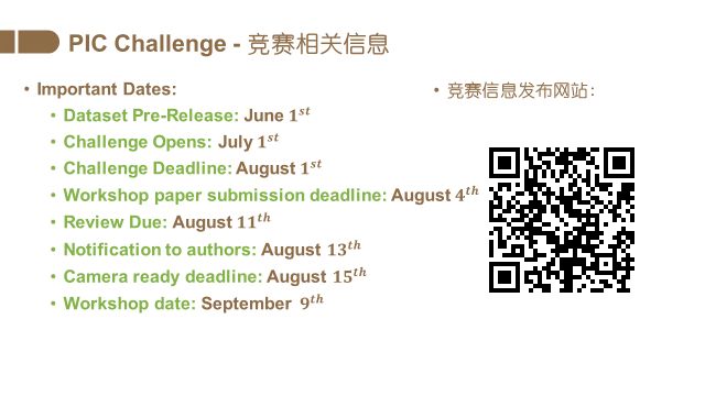 Person In Context (PIC) 2018 (http://www.picdataset.com/) 将于2018年9月9日在德国慕尼黑的ECCV 2018的workshop "1st Person in Context (PIC) Workshop and Challenge" 上举办。我们从真实场景收集了约1.5万张图像,平均每张图包含4个人。这些图像包含复杂的人的姿态、丰富的拍摄视角、不同程度的遮挡和图像分辨率。每一张图片都包含了人和物体像素级别的语义分割、场景分割以及人和人/物体的关系标注。在客观世界不计其数的类别中,人是最特殊的一类。因此本竞赛在任务设定过程中,着重考量了以人为中心的关系分割 (relation segmentation)。传统的关系预测,比如Visual Genome,以及Google 的Open Image Challenge 的关系都是定义在矩形框(bounding box)上的。PIC竞赛的特别之处是,其关系是定义在分割区域(segmentation)上的。