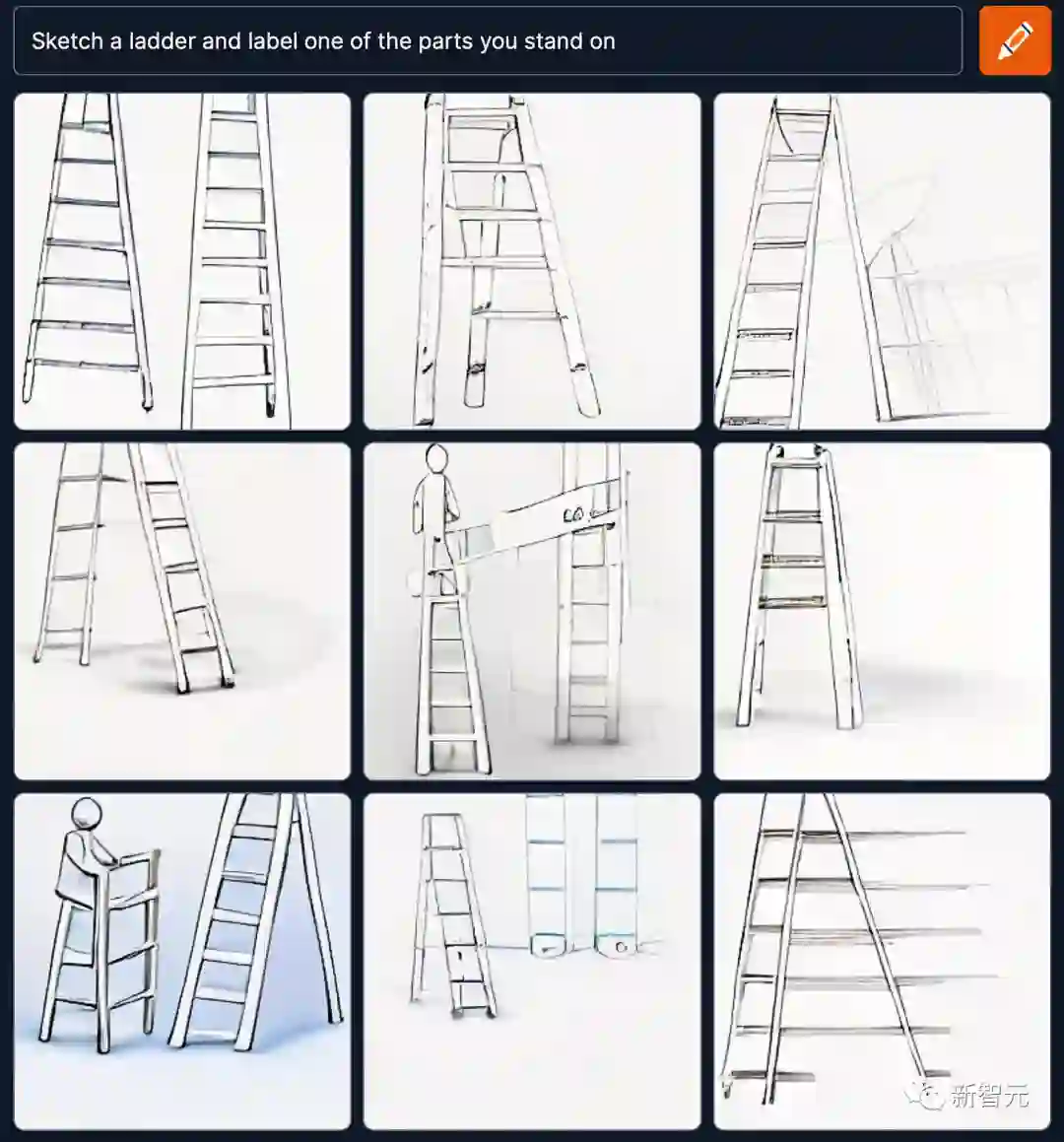 如果我们在一项基于事实的任务中,试图了解系统对(a)部分和整体,以及(b)功能的认识,比如「画出一个梯子并标出你站在上面的部分」这样的提示,会怎么样?