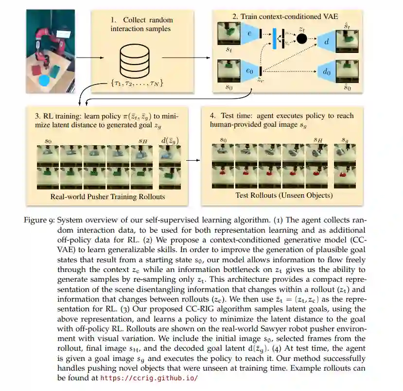 对于机器人来说,要在现实世界的非结构化环境中执行任务,他们必须能够以一般的方式被赋予一个期望的目标,并且在机器人还不知道如何完成的情况下,学会快速地执行期望的任务。在这篇论文中,我们探索了深度强化学习作为一种解决方案,通过两个主要主题来实现可扩展的基于学习的真实世界机器人的愿景:从先验数据加速强化学习和自监督RL。从先验数据或先验知识加速RL对于使强化学习算法具有足够的样本效率来直接运行在现实世界中是非常重要的。我们讨论了利用人类演示来加速强化学习,使用人类设计的剩余控制器与工业插入任务的强化学习相结合,以及离线强化学习的算法,也可以受益于少量的在线微调。同时,虽然强化学习算法的样本效率是一个备受赞赏的问题,但围绕可以从丰富的观察(如图像)中学习的智能体产生了额外的问题:特别是奖励监督和自主收集数据。我们通过一个生成模型来讨论自监督的RL,通过目标达成,让智能体评估他们自己在达成目标方面的成功,并自主提出和练习技能。在最后一部分,我们考虑将线下政策学习与自我监督练习相结合,让机器人在新的环境中练习和完善技能。这些指示使机器人能够监督自己的数据收集,从交互中学习复杂和一般的操作技能。