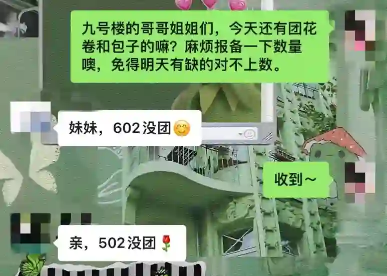 我是接任做的楼长,之前管理我们这栋楼的是一位将近70岁的阿姨。我见她忙上忙下的,就跟她说,要不我帮你建个群吧,这样你就不用挨个楼的跑。后来我在志愿者群里也建议大家帮助所在的楼栋去建一个群,慢慢的我就开始做一些传递消息的工作。