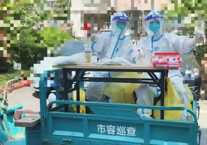 张意红所在小区用三轮车运送医护人员做核酸 图源:受访者